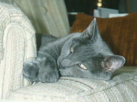Misha is in his natural habitat--asleep on the sofa. (He was named after Mikhail Baryshnikov, by the way.)