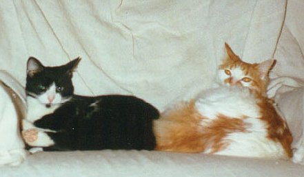 Anna Marie Johnson, Reference, Ekstrom Library My two cats are Motorhead and Misfit. Motorhead is a two-year-old, 15-pound, orange and white cat who is part Maine Coon and is without a doubt the sovereign of my apartment. His "sister" is a one-year-old tuxedo cat who likes to jump up and try to open the door to the bedroom or the door to outside with her paws. In the morning it just sounds like she's throwing herself against the door with plaintive cries. Motorhead is my alarm clock. He meows loudly and promptly every morning at 6:00 a.m. Both of them love to go outside on leashes. |
