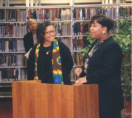 From left to right: Linda Wilson, Multicultural Center and Rae Helton Office of Information Literacy back: Hannelore Rader, University Librarian